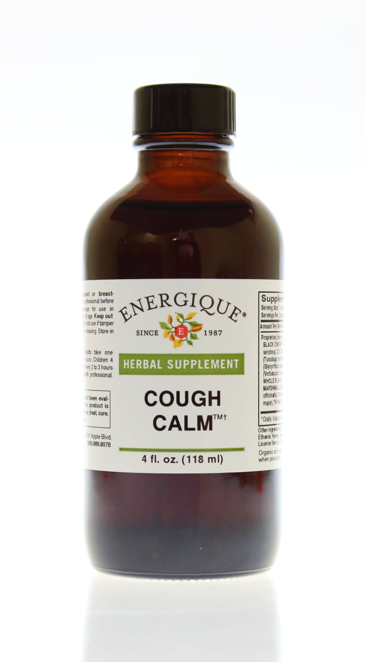 Energique's Cough Calm™ contains Black Cherry (bark), Coltsfoot (leaf), Licorice (root), Mullein (leaf), Irish Moss (whole plant), Marshmallow (root), Plantain (leaf), Thyme (leaf).